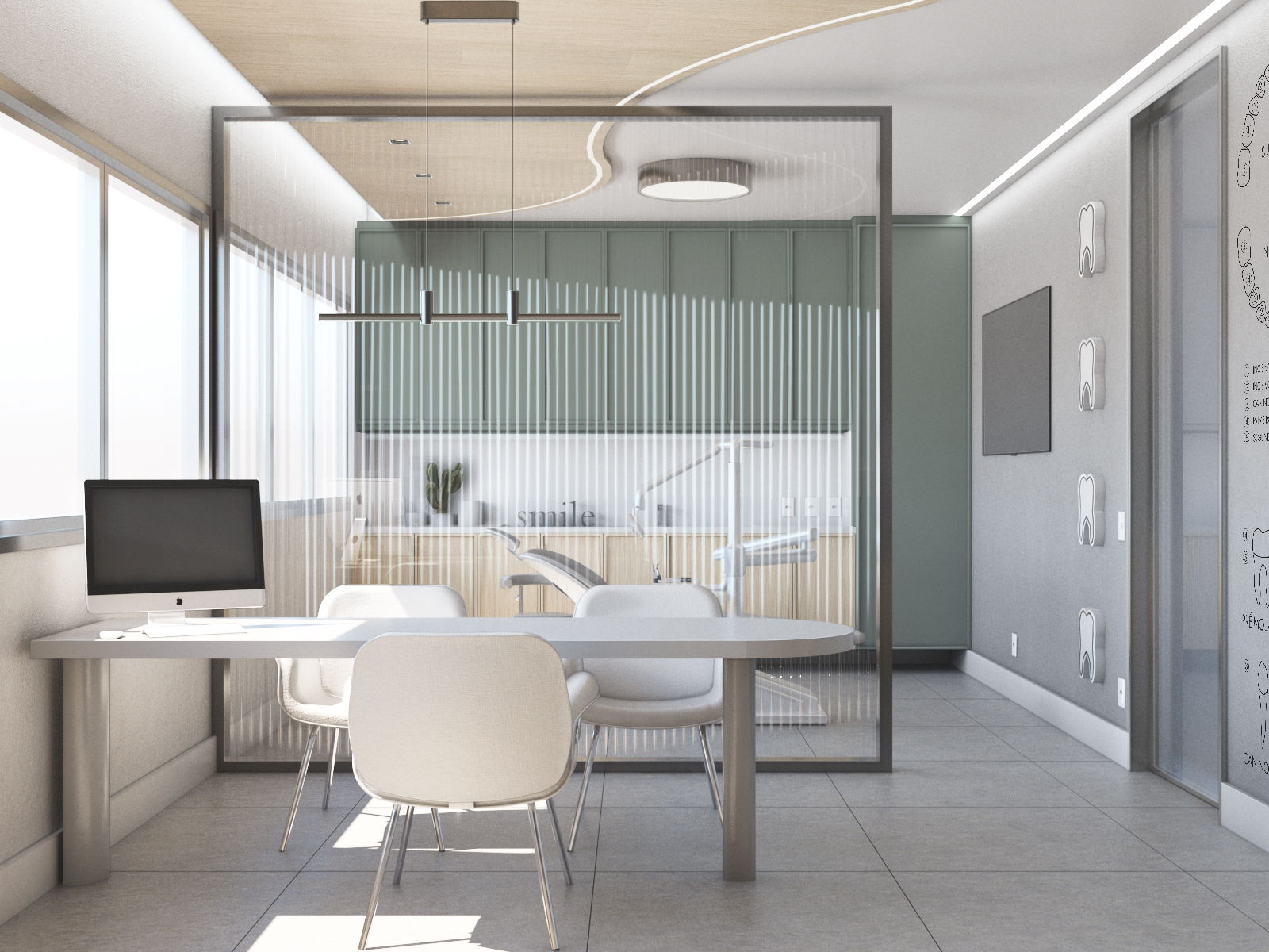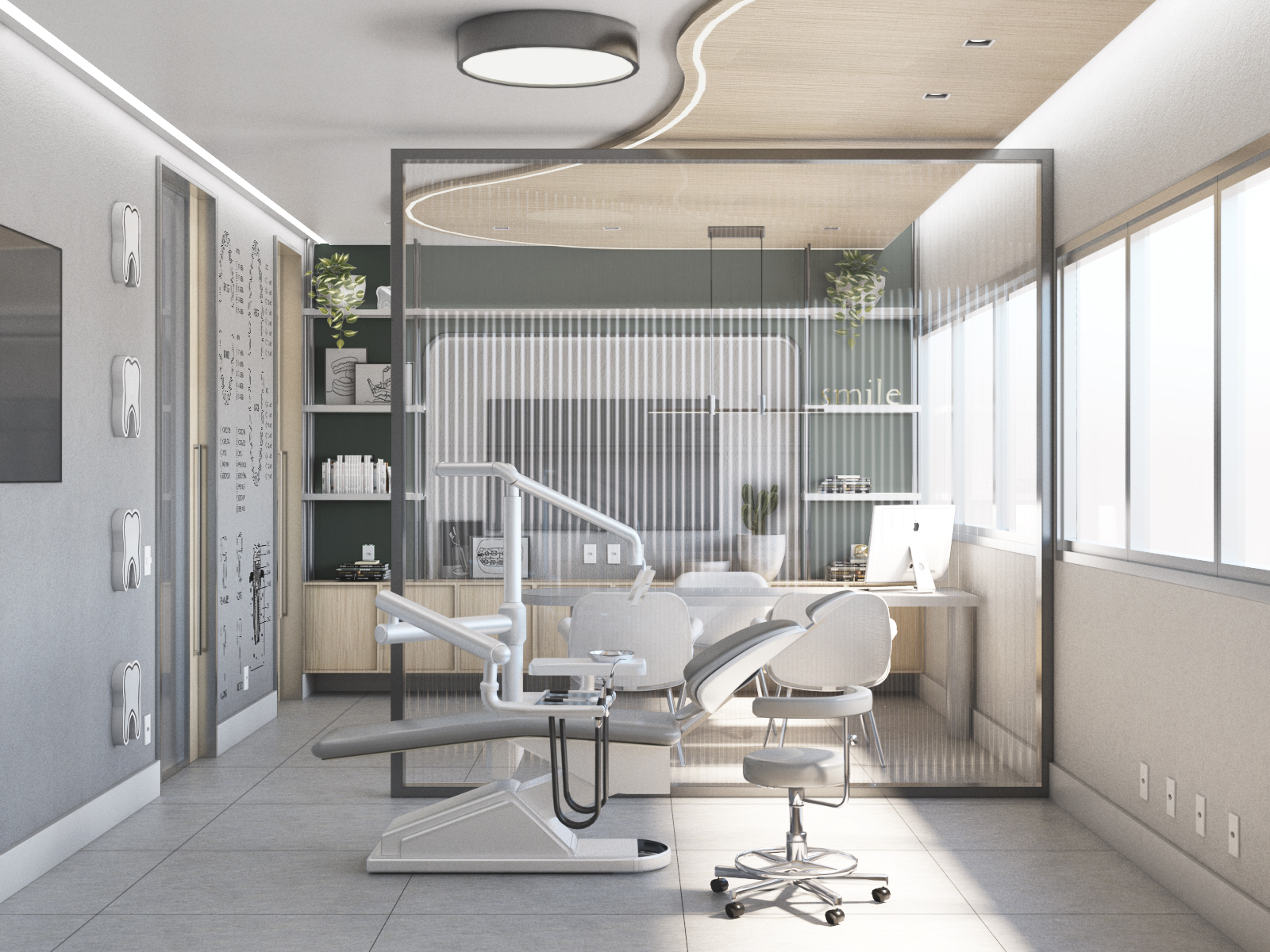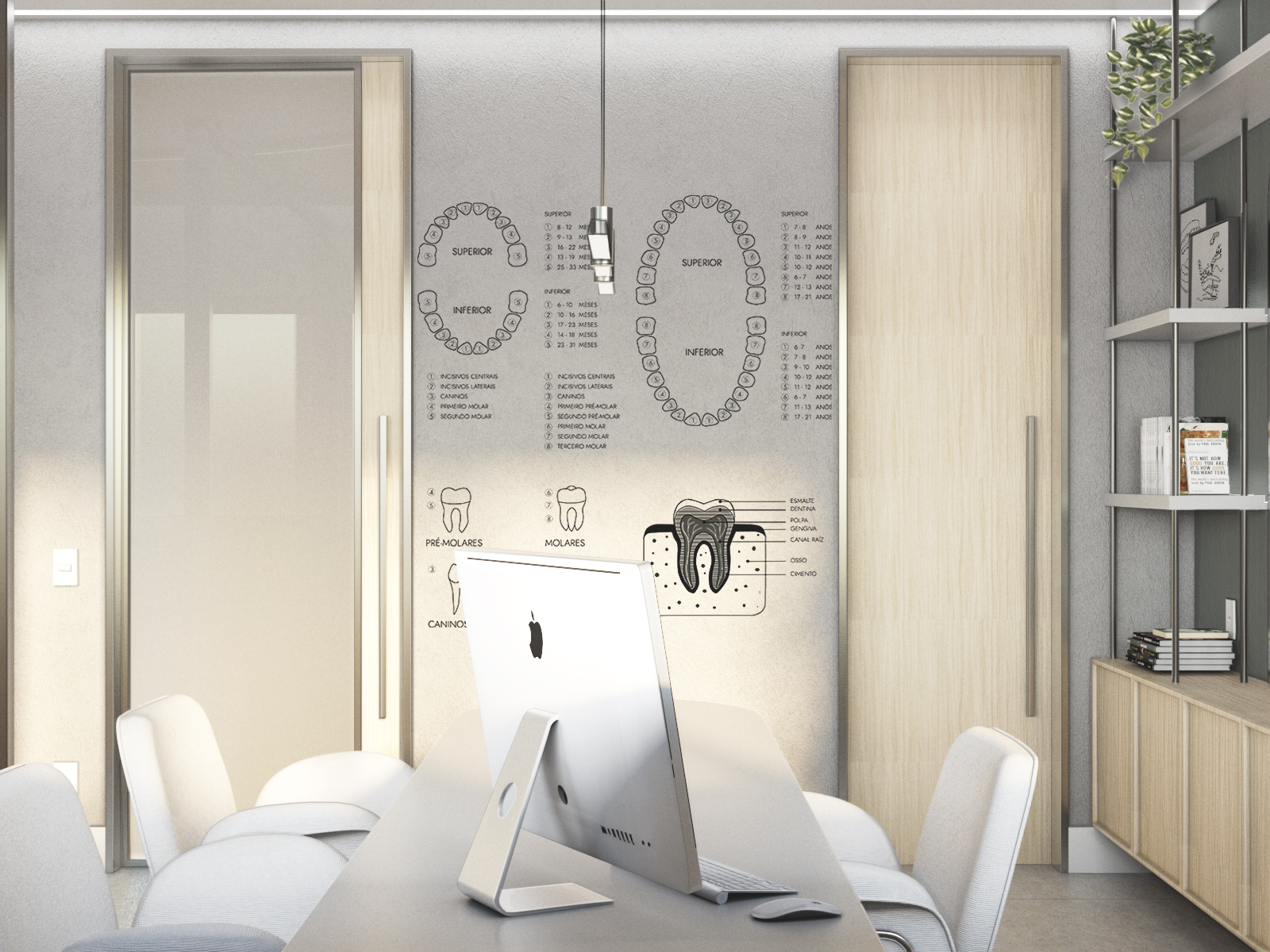 Conforto e bem-estar foram as premissas que conduziram o desenvolvimento projetual deste ambiente. A mesma sala abriga Procedimento e consulta, tendo sido meticulosamente planejada para proporcionar segurança e conforto, ao mesmo tempo em que apoia as funções laborativas e aprimora a eficiência.